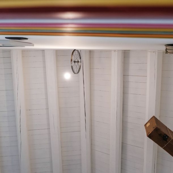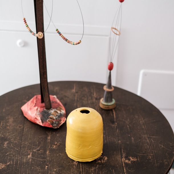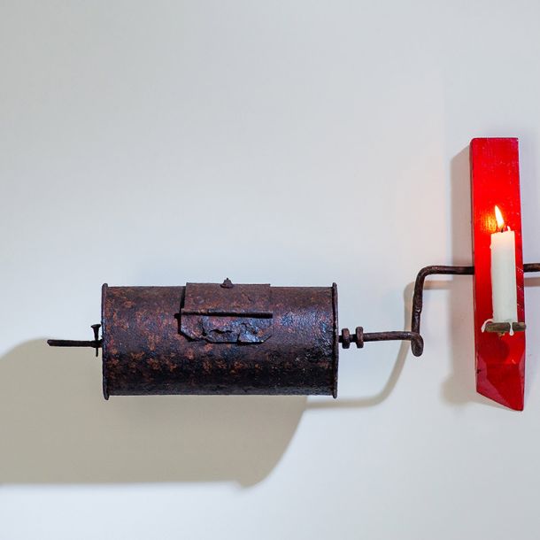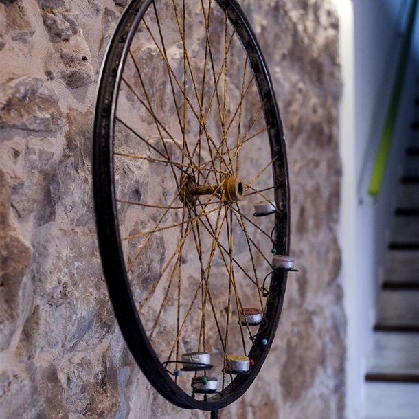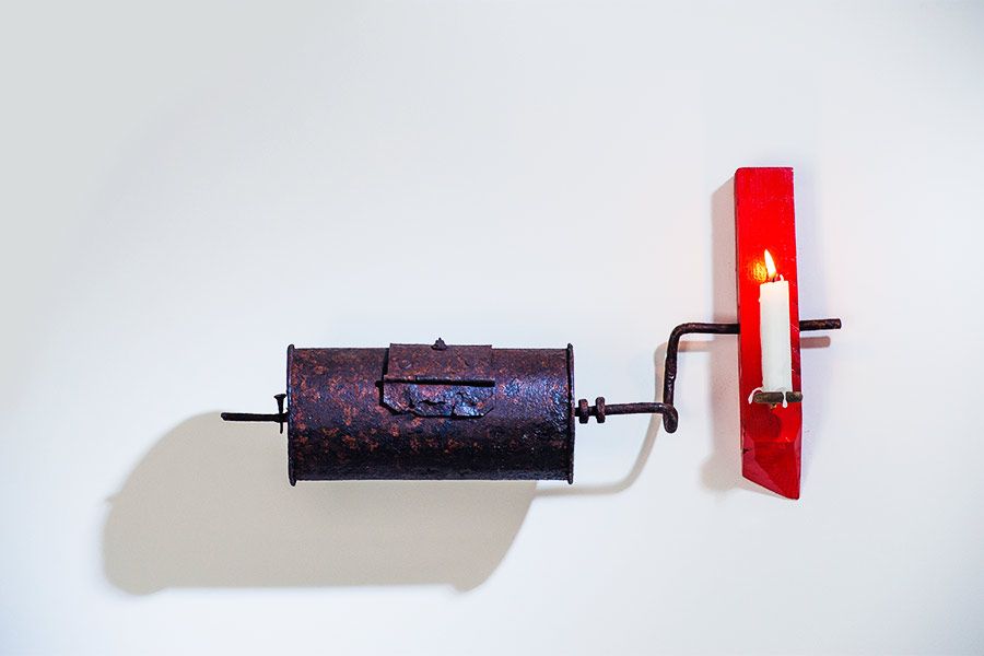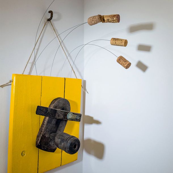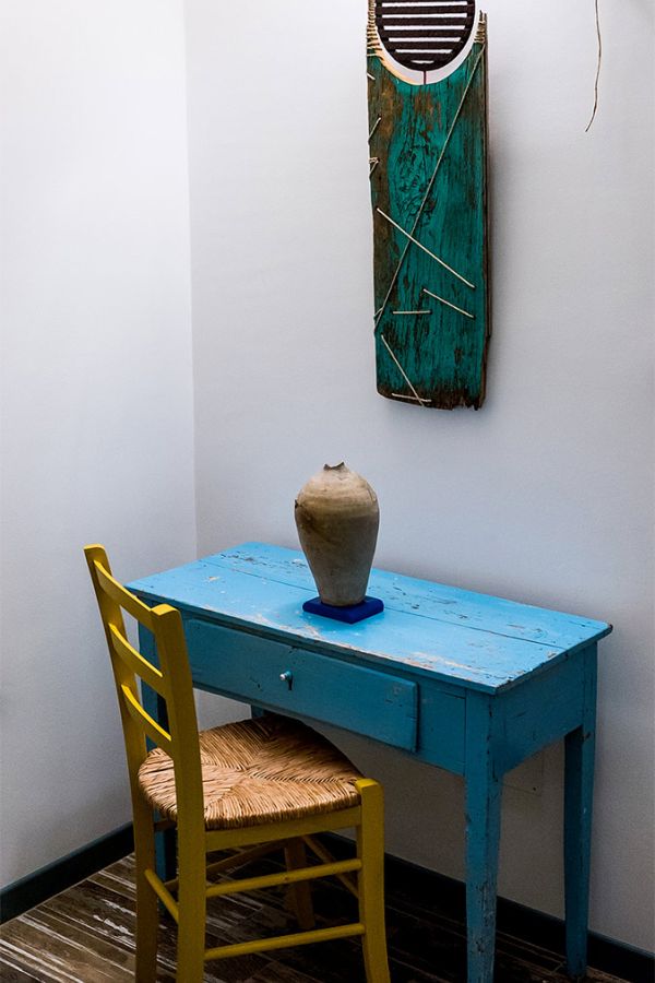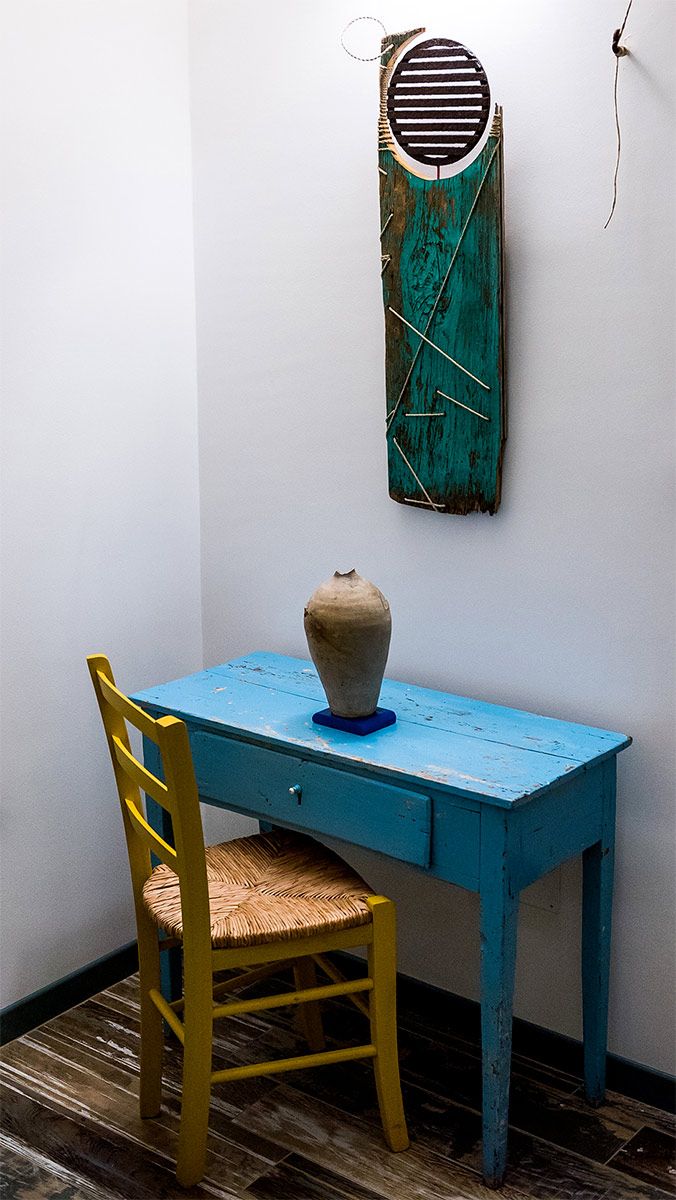 In questo spazio gli oggetti parlano del tempo e del lavoro dell’uomo, rievocando il ricordo del nonno paterno, commerciante lungimirante e titolare di una delle botteghe più conosciute in città. Le casse delle bibite Partanna diventano comode mensole e i tappi di sughero molleggianti recitano la parte di chi, stanco, rincasava a fine giornata. La ruota di una bici, regalo di quinta elementare, diventa un portacandele e negli oggetti si intravedono forme e ombre umane.