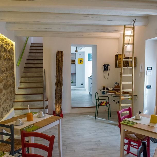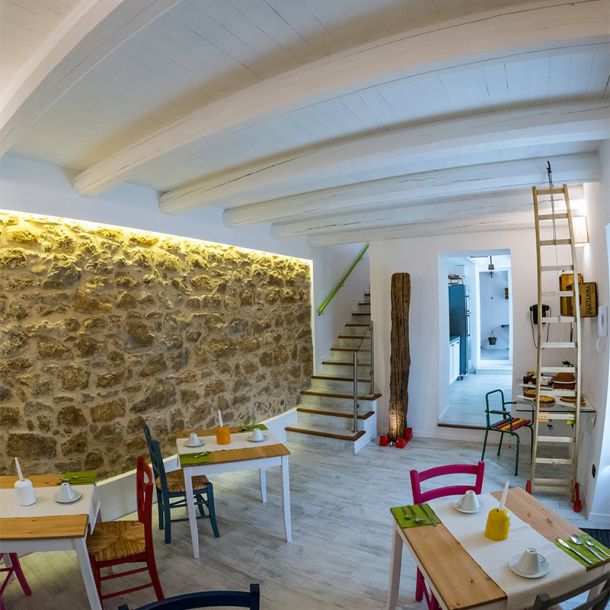 Un ambiente accogliente, familiare e caratteristico, in cui gli ospiti possono gustare un’abbondante colazione con i prodotti tipici del luogo.