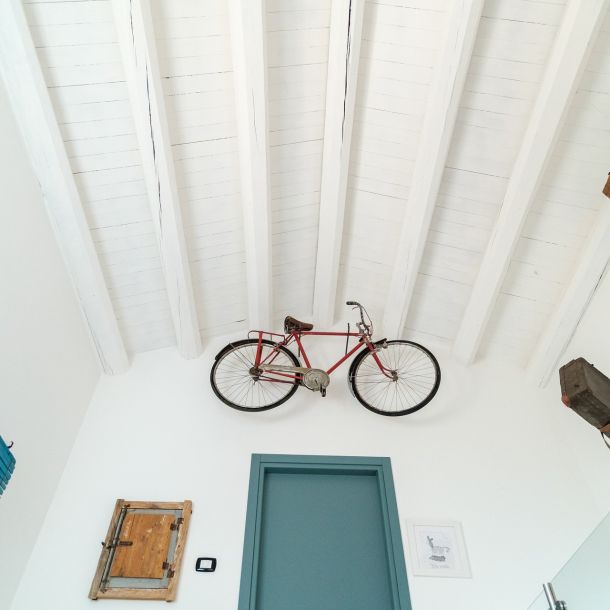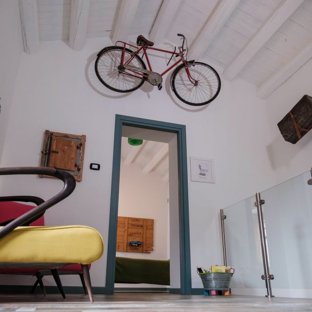 Un angolo suggestivo dedicato e riservato a tutti coloro che sono di passaggio. Appese al soffitto, fluttuano le valigie di cartone del nonno materno: testimoni di viaggi e di terre, di partenze e di ritorni. Sulla porta poi la bicicletta dei lunghi tragitti, sul manubrio ancora le impronte di chi sapeva tutte le volte dove andare, di chi non perdeva mai la strada. Un ambiente accogliente, familiare e caratteristico, dove poter leggere in tranquillità e sorseggiare una buona tazza di tè.