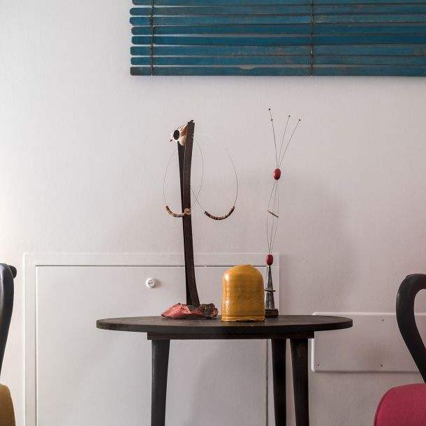 Il caso non esiste, è stato il destino a dar vita agli spazi in comune. Per il salotto e per la sala colazione Vincenzo Germanà, senza saperlo, ha recuperato e messo insieme rispettivamente gli oggetti appartenuti a mio nonno materno e a mio nonno paterno. Senza volerlo, l’artista ha donato a questi ambienti i ricordi di due uomini molto importanti nella mia vita, che in questo modo possono tornare a vivere.